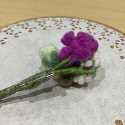 羊毛フェルトをチクチクしたお花の手作りブローチです。